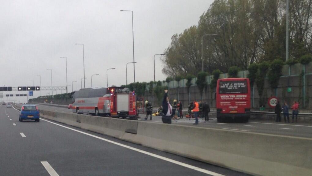 Bij een busongeluk op de A1 bij Muiden zijn zaterdagmiddag bijna dertig gewonden gevallen. Het ongeluk gebeurde bij de afrit Muiden-Oost, vanuit Amersfoort. Verkeer kan via de wisselstrook passeren.