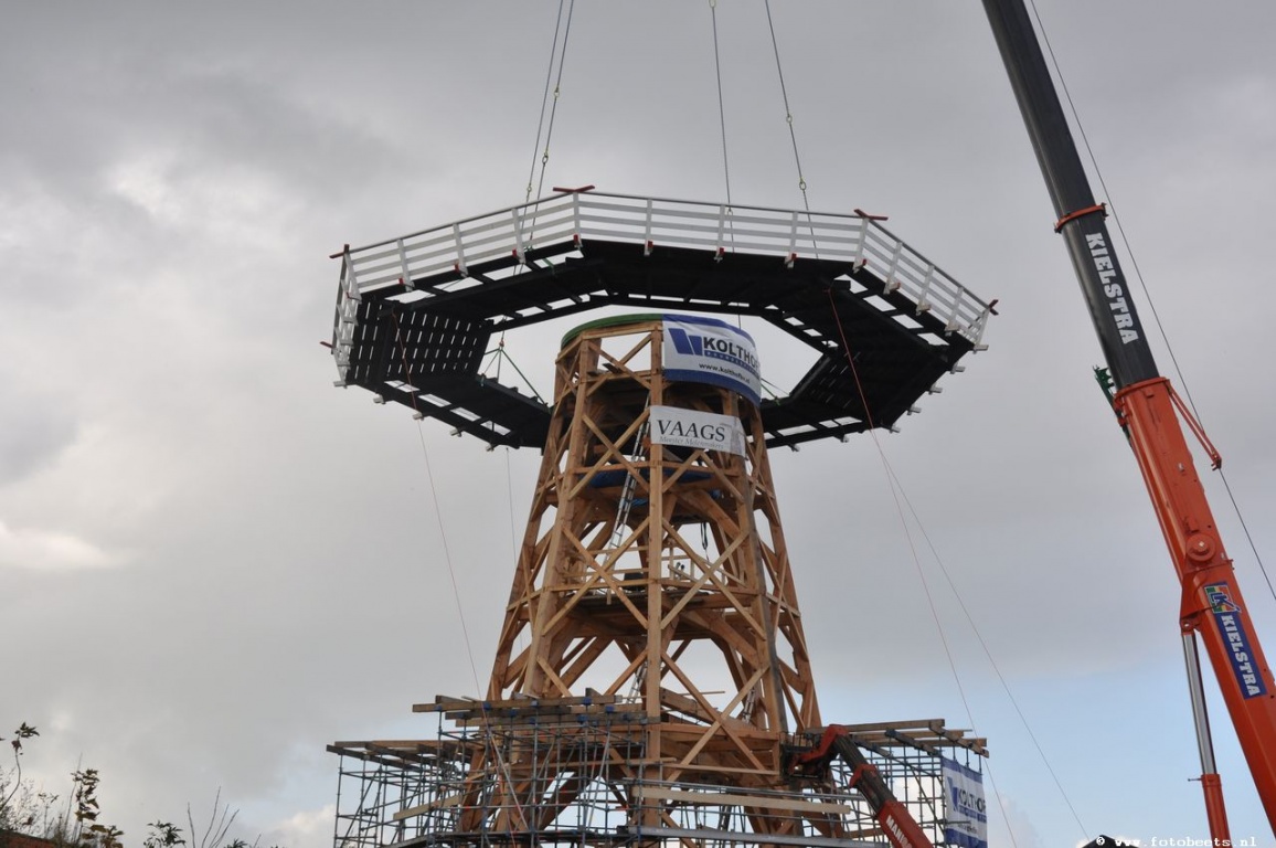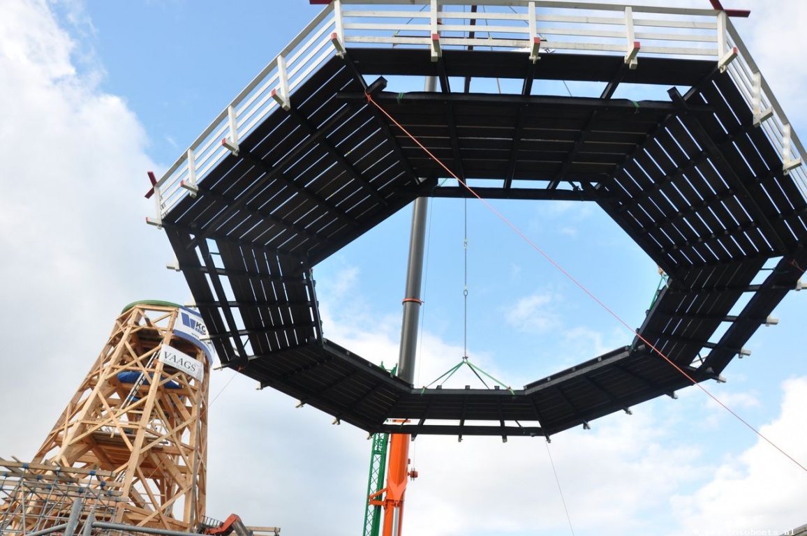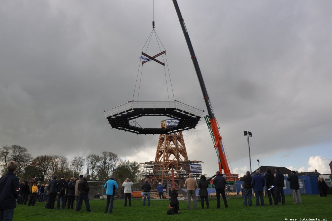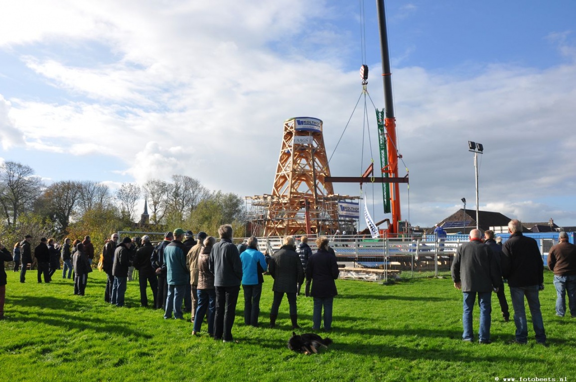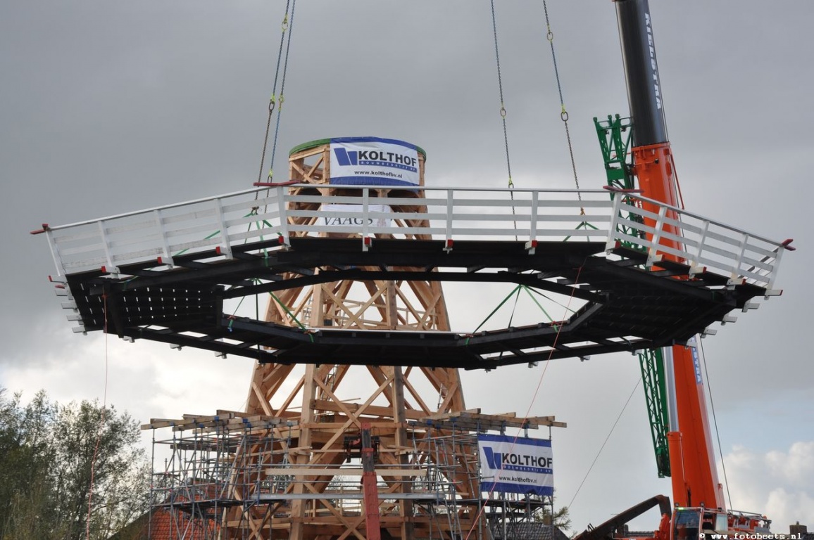 Langzaam maar zeker krijgt molen Windlust in Burum zijn de karakteristieke uiterlijk weer terug. Herstel gaat voorvarend. Nadat eerder al het achtkant trots overeind is gezet, werd de stelling rondom de molen gemaakt in de werkplaats van molenbouwer Kolthof.