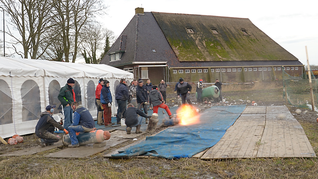 Op oudjaarsdag was het de jaarlijkse en oorverdovende spektakel van knallende carbidbussen! Zo ook in de kleine dorpen van Dongeradeel. Everdina Boersma ging met de fotocamera op pad en kwam uit in Morra, Nes en Peasens.