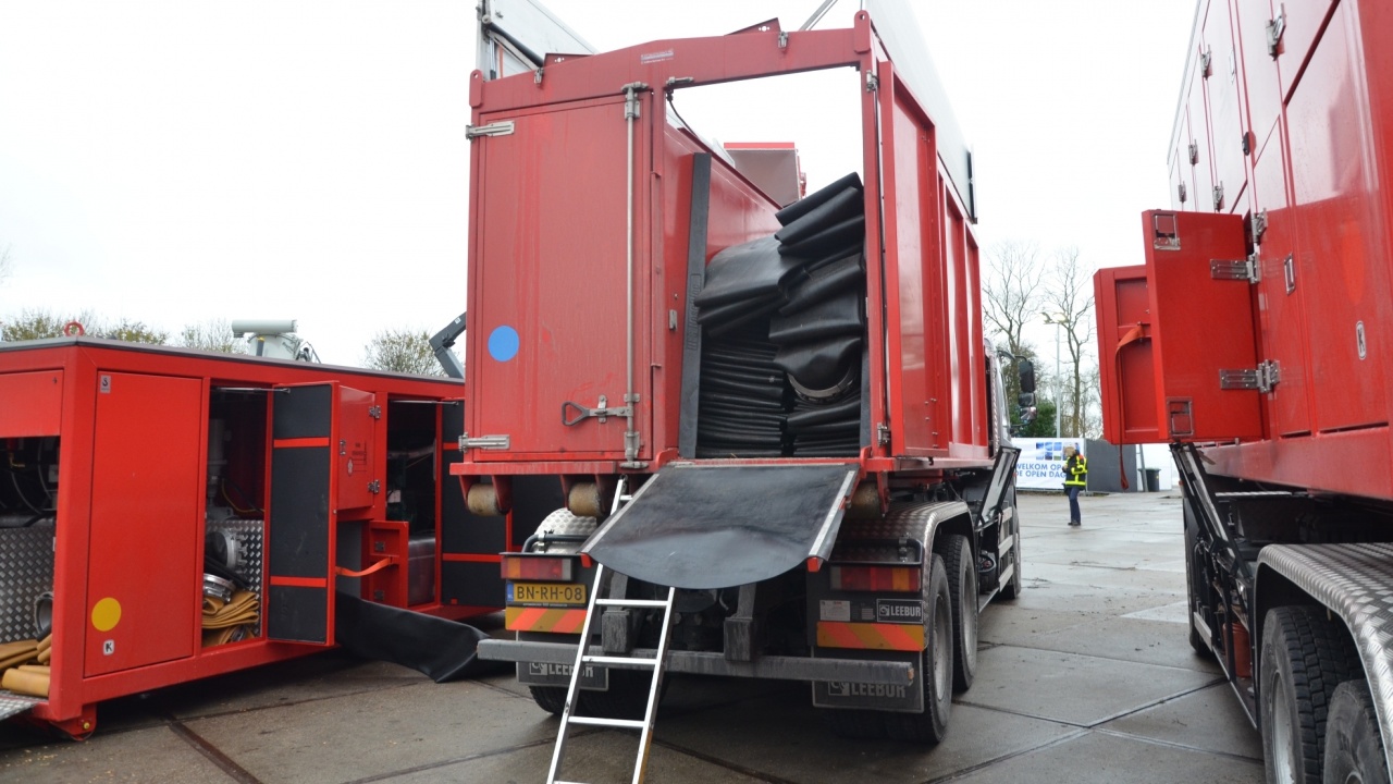 Op het buitenterrein stonden verschillende voertuigen opgesteld, waaronder de bedrijfsbrandweer van de NAM, aanwezig met 2 complete dompelpomp eenheden en 2 commandowagens, De brandweer wordt hoofdzakelijk ingezet voor waterwinning en blussen van branden op de boorlocaties met een pomp die 11.000 L water per minuut kan verstouwen zijn het geen kleine pompen. Verder stonden er nog voertuigen van het overslagbedrijf REYM, vrachtauto’s die zeer vertrouwd zijn in Noordoost Fryslân, deze auto’s houden zich bezig met het vervoer van een restproduct tijdens het boren naar gas.