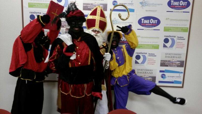 Op vrijdagavond 29 november zaten de Minipupillen en F’jes van de v.v. Dokkum vol spanning in de kantine. De Sint met zijn Pieten zouden deze avond langskomen en het is natuurlijk altijd maar de vraag of De Sint de weg kan vinden naar het Harddraverspark… De kinderen zongen de longetjes uit hun lijf en dat had resultaat. Plotseling stond Sinterklaas met 3 Pieten voor de deur en sprongen de kids van hun stoel.