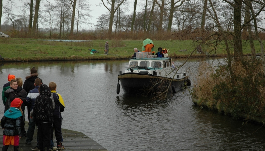 Zaterdagmiddag werd Sinterklaas en zijn Pieten feestelijk binnen gehaald in Westergeest. Alle kinderen met hun ouders wachten hem op in de haven van Westergeest waar dominee Bernard de boer hem welkom hete.